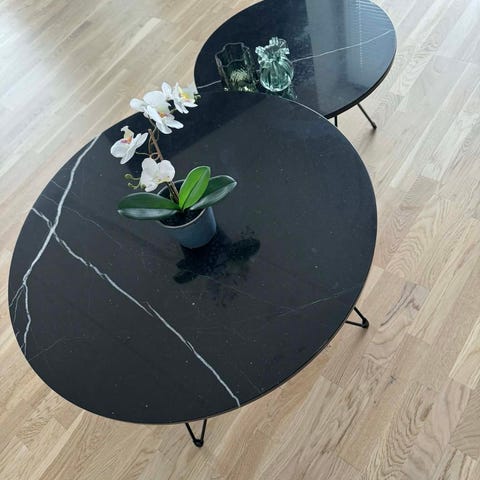Vi har 10 stk. i alt. Det er fine marmor bord/sofabord fra Ilva