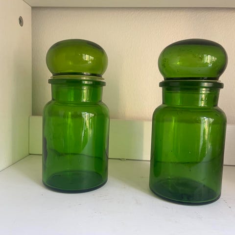 2 str. m/ belgiske apotekerflasker i grøn, vintage
