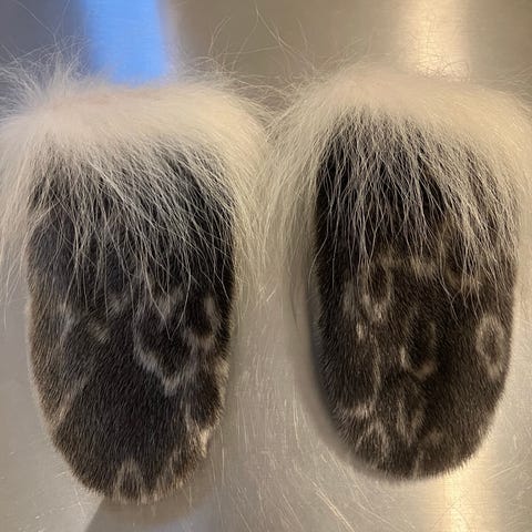 Handsker, Fra grønland, str. Stor, Sælskind, rævepels, Ubrugt, Nye lækre sælhandsker syet på Grønland.