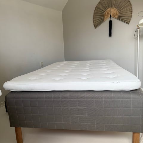 Nærmest ny, købt d. 28 august 2025 og brugt indtil november, med et toplagen på. Ingen defekter eller mangler, standen er som spritny:) Topmadrassen er meget blød og kan gøre selv den hårdeste seng mulig at sove i!