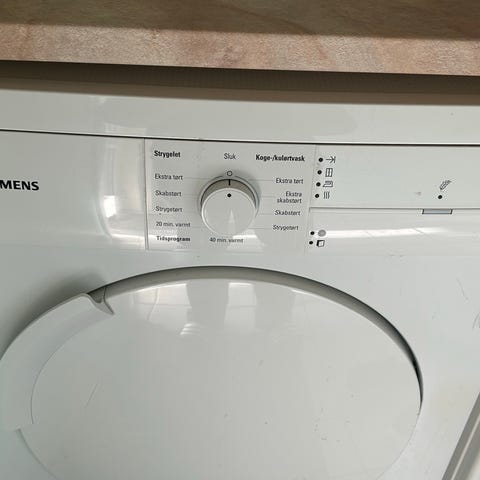 Siemens tørretumbler A34•10 med frontbetjent dør og aftræk. Sælges pga flytning. Fungerer som den skal.