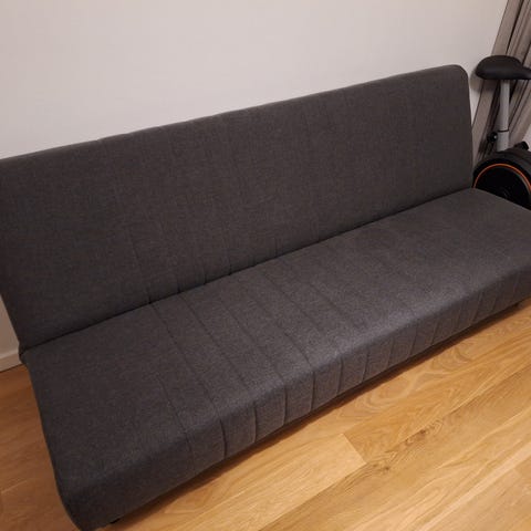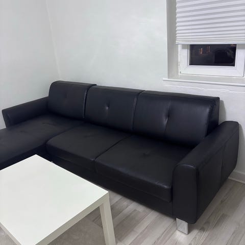 Sælger denne brugte sofa da jeg har købt en ny. Den er smart da der kan gemmes dyner og puder eller en anden form for opbevaring.