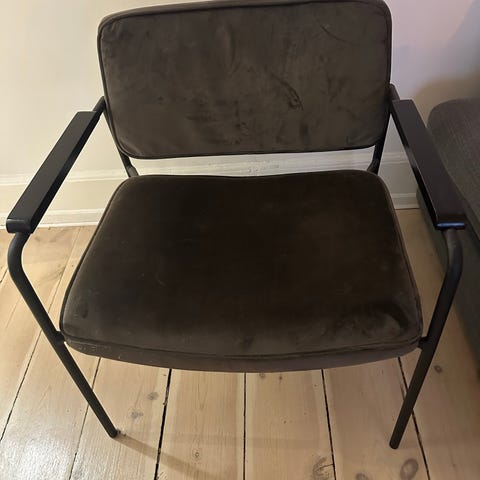 Lænestol og skammel fra Ilva. Næsten ikke brugt, fremstår som ny. Dyre- og rygefrit hjem.