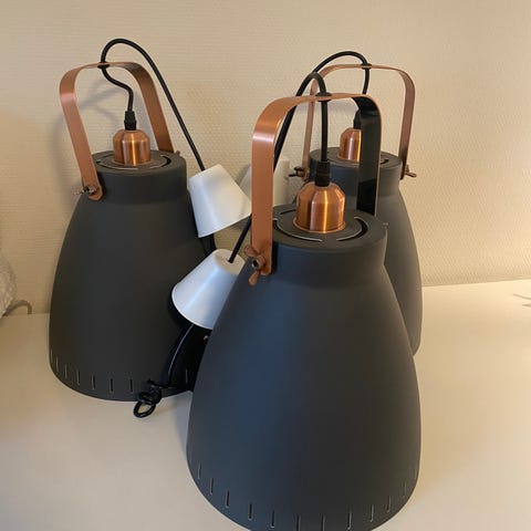 2 Fine loftlamper med kobber look, 500 kr pr stk, eller samlet for 800kr