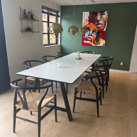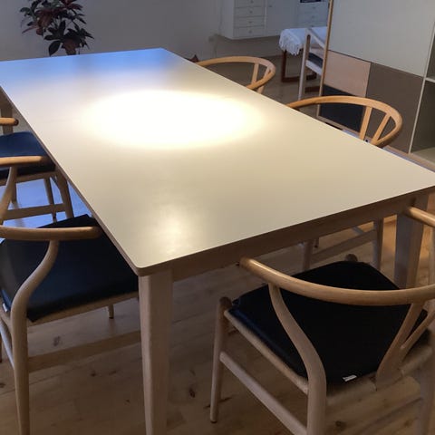 Det er et rigtig godt og solidt bord, til den der ikke vil have et bord, der fylder for meget til hverdag, men har behov for at kunne udvide når der kommer gæster, der kan sidde 10-12 om bordet.
