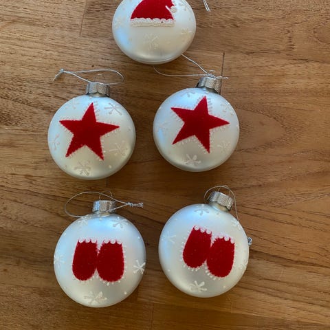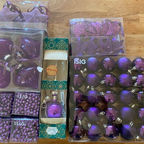25 kugler, 20 meter kæder, 4 store ornamenter af glas, 6 glimmerstjerner og 10 små stjerner.
