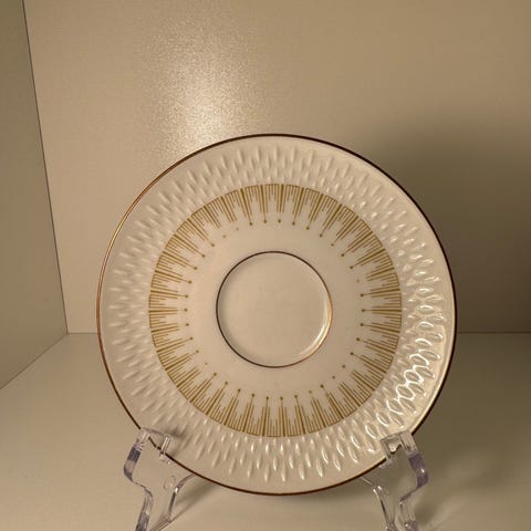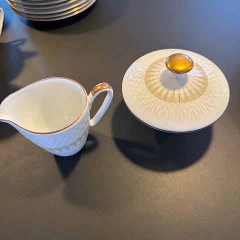 8 stk Middagstallerkener i hvidt porcelæn med guldmønster, fra Marselisborg Edelstein Ø 25 cm.