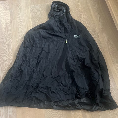 Ubrugt regnslag i mørk grå farve.