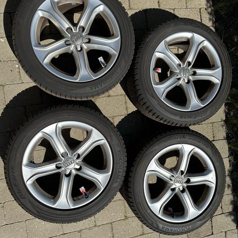 4 Originale alufælge til Audi 8x17. Et 39 med superfine Nexen Winguard Sport 2 dæk årgang 22 8 til 9 mm på alle dækstørrelse 225x55-17. Lige afbalancere Passer på Audi både hvor nav er 57,1 og 66,5 der er center ringe med Passer også på andre VAG Pris på nye Dæk magen til koster ca 830 kr. stk. Der er ingen center kapsler med Audi logo på 🛞