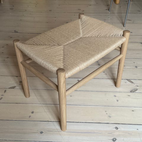 Fin og funktionel bænk fra FDB, designet af Mogens Koch. Massiv eg med polstret sæde og ryg monteret med læder i cognac farve. Opr pris 12.000 kr