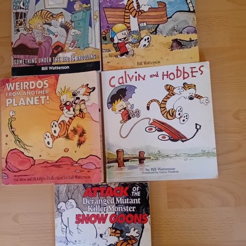 I 1980-1990erne var vores familie store fans af Steen & Stoffer - og de originale Calvin and Hobbes på amerikansk var endnu bedre, en sjov og effektiv sprog-oplevelse. Nu har de ligget på loftet i 25 år og må videre.