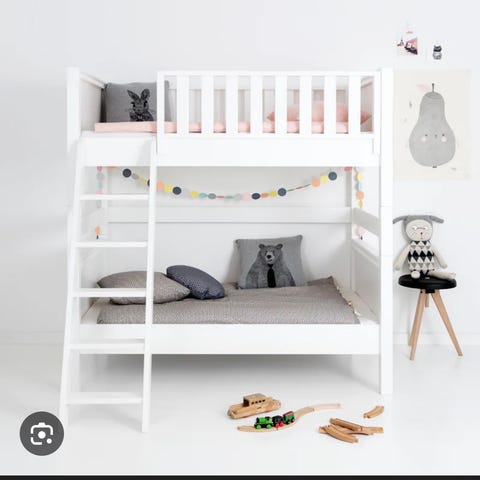 Meget stabil og solid køjeseng som også kan holde til, at en forældre ligger i sengen.