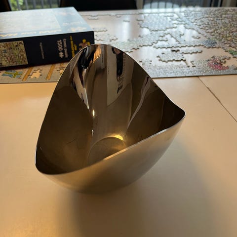 Georg Jensen skål i krystal med bølget mønster. Skålen er designet til dekorative formål og kan anvendes til servering eller som pynt.