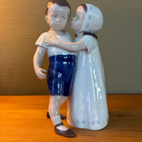Bing & Grøndahl Figur af Pige i Blå og Hvid Kjole