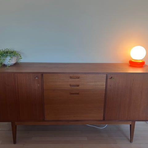 Flot teakmøbel i klassisk dansk 50/60’er stil.