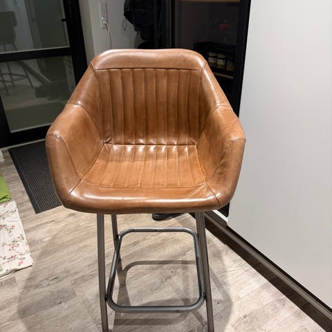 På det ene side er der en meget lille misfarvning. Har stået i vores køkken, men nu får vi fjernet bar-bordet derfor sælger vi de to flotte stole.