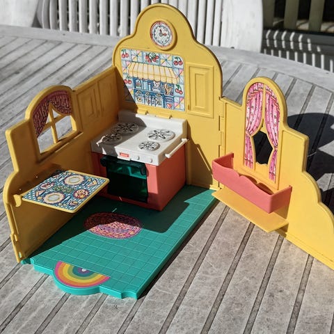 Legetøjssæt med køkkenredskaber og madvarer til Barbie eller andet