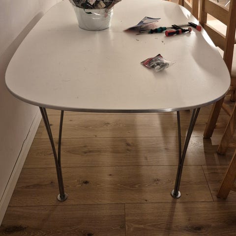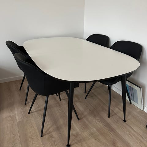 Ovale hvidt spisebord,brugt 1/2 år, incl. 2 tillægsplader a 50 cm