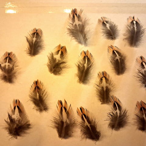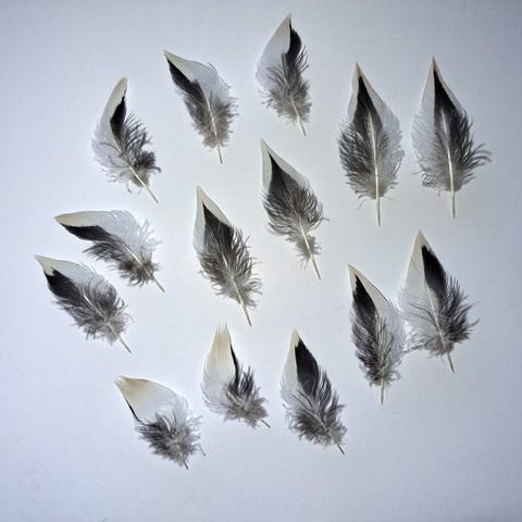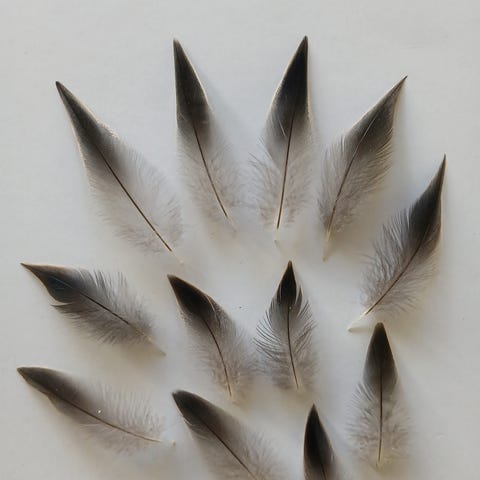 Jeg laver gerne specialbestillinger på større mængder almindelige kropsfjer, som forekommer i overtal på fuglene, alt efter hvad jeg har liggende.