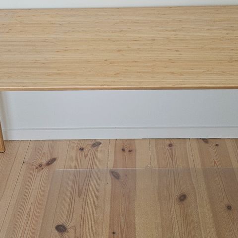 Et flot skrivebord af holdbar bambus. Ser godt ud fra alle vinkler, så du kan placere det i midten af et rum. Skrivebordet indeholder også 3 indbyggede A4 skuffer. Det er i god stand, og er ikke brugt særlig meget.