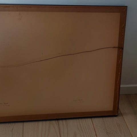 Rammen er flækket lidt for neden, men har hængt uden problemer.