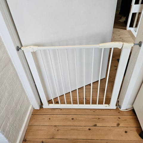 BabyDan sikkerhedsgitter i hvid. Designet til at sikre børn ved at afspærre områder i hjemmet.