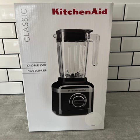 KitchenAid Classic K130 hvid blender med kande og låg. Stand mixer blender med brugermanual og strømkabel. Produktet er velegnet til blendning af forskellige ingredienser.