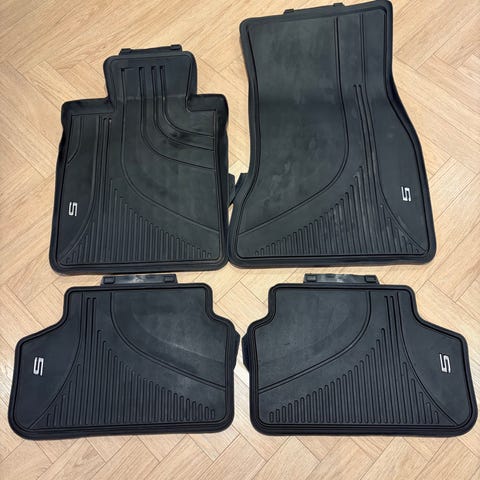 Original BMW gulvmåtter sæt i sort gummi til BMW i4. Designet til at passe til BMW i4 for at beskytte bilens gulv mod snavs og væsker. Sættet indeholder måtter til både for- og bagsæde.