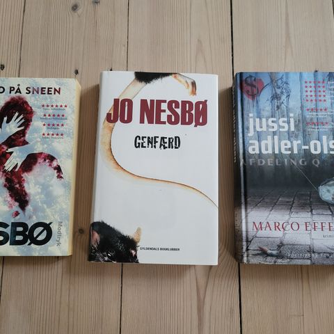 2 stk bøger af Lars Kepler 100 kr pr stk .,1 stk Jo Nesbø 60 kr. Dean 30 kr