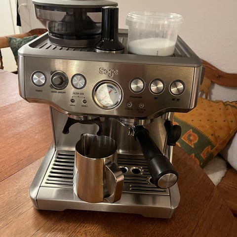 Maskinen er ikke brugt meget og er vedligeholdt og afkalket jævnligt og fungerer perfekt