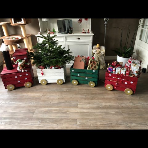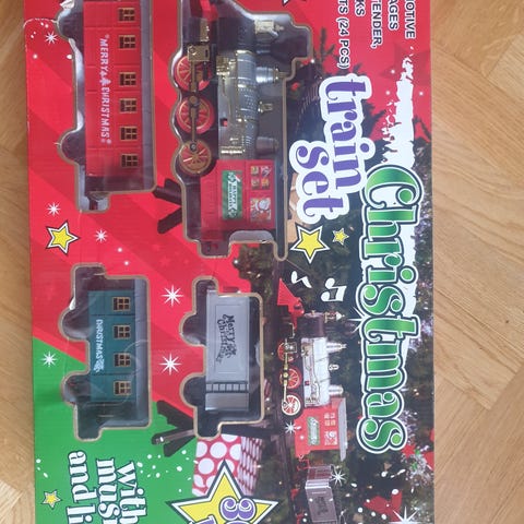 Helt nyt juletog. Stor flot spilledåse med snekugle på ladet af toget. Ny pris 599kr. Stadig i original æske. Købt i Berlin.