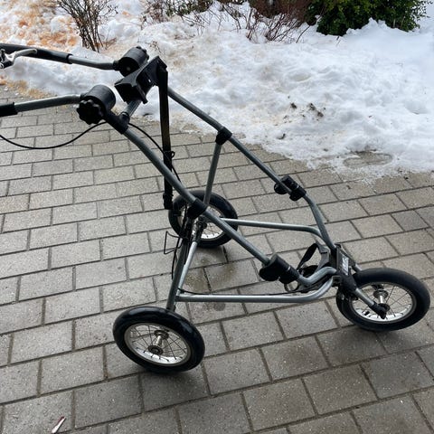 Golfvogn med aftagelige hjul. Skal pudses og smøres, men fejler ikke noget.