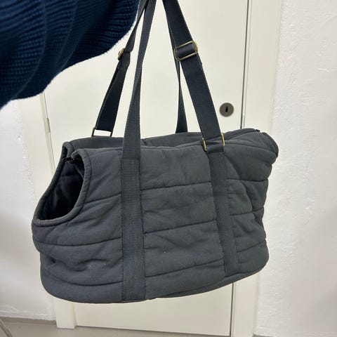 Også velegnet til hvalpe. Robuste materialer, kan vaskes i maskinen på skånevask 30 grader. Tasken er brugt sparsomt, da vores Pomeranian voksede ud af den efter 3 mdr.