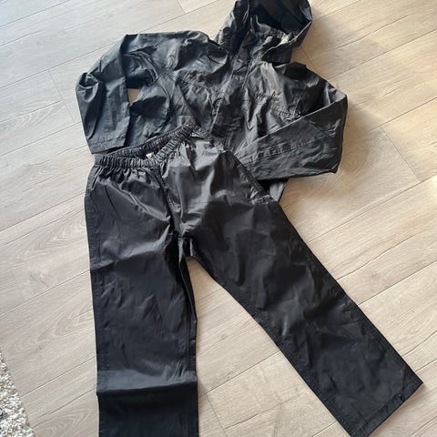Sort Didriksons regnsæt str. 150. Rigtig god stand, næsten ikke brugt. Hætte mangler.