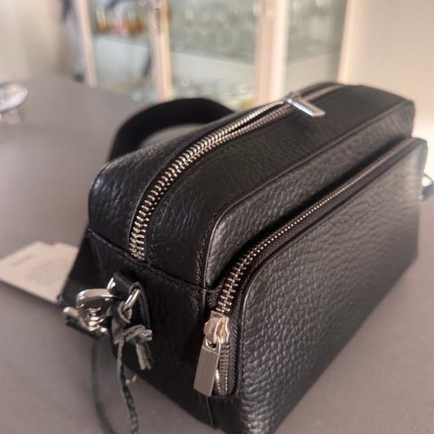 Brugt meget lidt fra oktober, hvor jeg fik den. Måler ca 26x20x7 cm. God indretning med lynlås rum både indvendig og udvendig. Sender gerne. Virkelig velholdt taske!