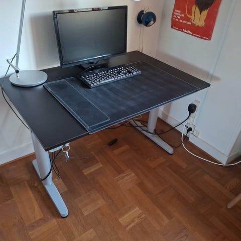 Sælger vores hæve-sænkeskrivebord som ikke fejler noget. Prisen er 500kr, og skal afhentes i 2500 Valby
