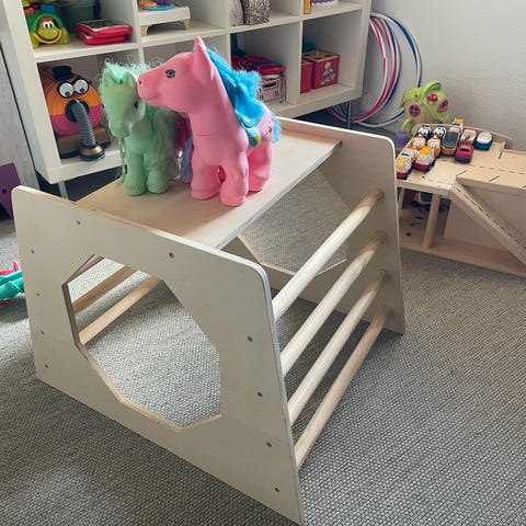 Fantastisk klatrestativ der kan ændres ud fra behov. Der kan tilkøbes flere ting til og kan nemt bruges på værelse eller i studen.