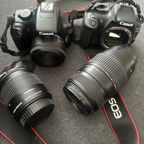 Det samlede sæt er perfekt til begyndere, som gerne vil igang med at skyde i spejlrefleks kvalitet. Jeg har brug linserne både privat og til professionelle opgaver, men altid beskyttet og i begrænset omfang, så sættet står i god stand.
