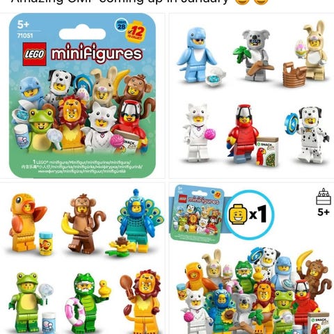 Jeg sælger 8 komplette serier af den nye Lego Minifigures - Animals Serie 28. Her slipper du for at skulle fare rundt i mange butikker for at samle en komplet serie. Og så sparer du penge 😁 En komplet serie med 12 æsker koster kun 300kr. Du sparer 60kr. i forhold til normalpris i butikkerne (12x30kr.) Hver serie indeholder 12 forskellige figurer, og alle æsker er tjekket for indhold, igennem en scanner app der fortæller hvilke figurer pakken indeholder.