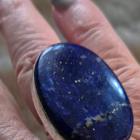 Ringen er med en smuk blå lapis sten og er stemplet 925s N E From. Det er str 53