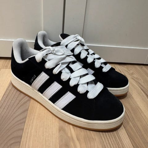 Adidas sneakers i størrelse 46 i sort farve. Skoene har snørebånd og en gummisål med mønster for bedre greb. Materialet fremstår som tekstil og syntetisk. Velegnet til daglig brug.
