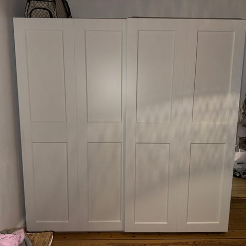 Jeg har et dobbelt IKEA PAX garderobeskab med skydedøre (1 spejl og 1 glas).
