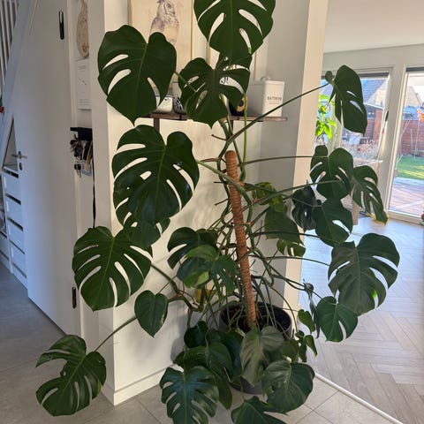 Monstera plante med store, grønne blade til indendørs brug. Sælges med potte.