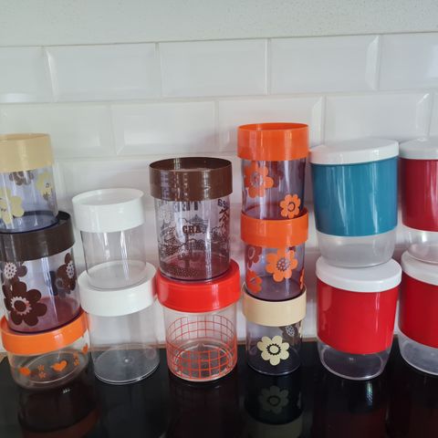 Erik Kold, stod dengang for at introduktionen af disse utallige farverige bøller som nok var at finde i ethvert køkken. Nu er det total Retro - Vintage opbevaringsbøller.
