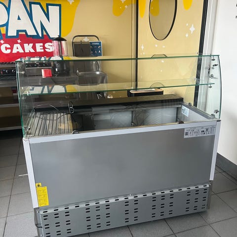 ggm gastro køledisk i sort farve. Køledisken har glas på tre sider og metalhylder indvendigt. Velegnet til opbevaring og præsentation af kolde varer. Går fra 0-12 grader.