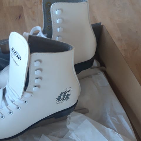 Børne skøjter størrelse 33-36. Brugt meget lidt da der sidst var skøjteløb i vinteren 2021