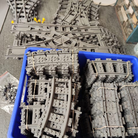 Assorterede skinner og skifte spor, rest efter et større projekt