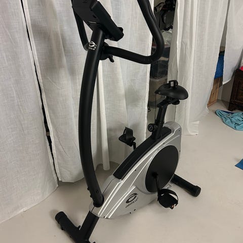 Robust motionscykel med elektronisk justerbar magnetmodstand, indbygget håndpulsmålere, computer med 12 forskellige forhåndsprogrammerede træningsprofiler, delt i tre niveauer: BEGINNER, ADVANCE og SPORTY. Kan via bluetooth kobles på træningsprogrammer. Kun brugt i få gange.