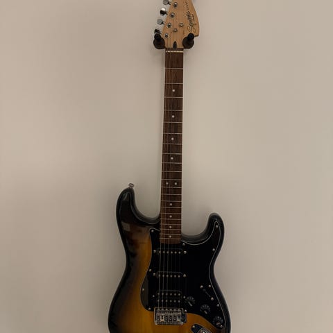 Det er en sqiuer Strat fra 2004. Jeg har haft den i 2-3 år og den har gjord mig glad hver dag Men nu skal den videre