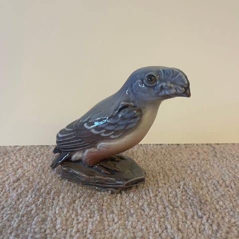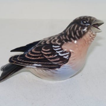 Dahl Jensen kvækerfinke. fuglefigur lavet i porcelæn. Figuren forestiller en fugl med detaljeret maleri i naturlige farver. Velegnet som dekorativ genstand.